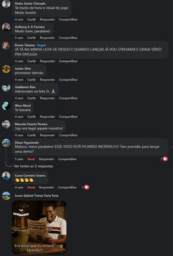 Este é apenas um pequeno exemplo de como o jogo está sendo apresentado à comunidade. Mostramos o projeto para dezenas de grupos diferentes, fazendo questão de que essas demonstrações comprovassem que estamos no caminho certo, em conjunto com a nossa comunidade. Em breve, divulgaremos as estatísticas e avaliações da nossa demo interna.